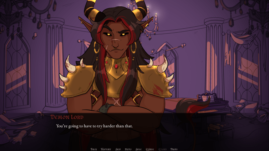 Until We Meet Again is a short fantasy romance visual novel created for the Sealed With A Kiss 2025 game jam over the course of a month by a team of two. It tells the story of a demon lord and the woman who comes to his castle to defeat him. Things become more complicated when they realize they’ve met before. The game features branching dialogue and two possible endings.